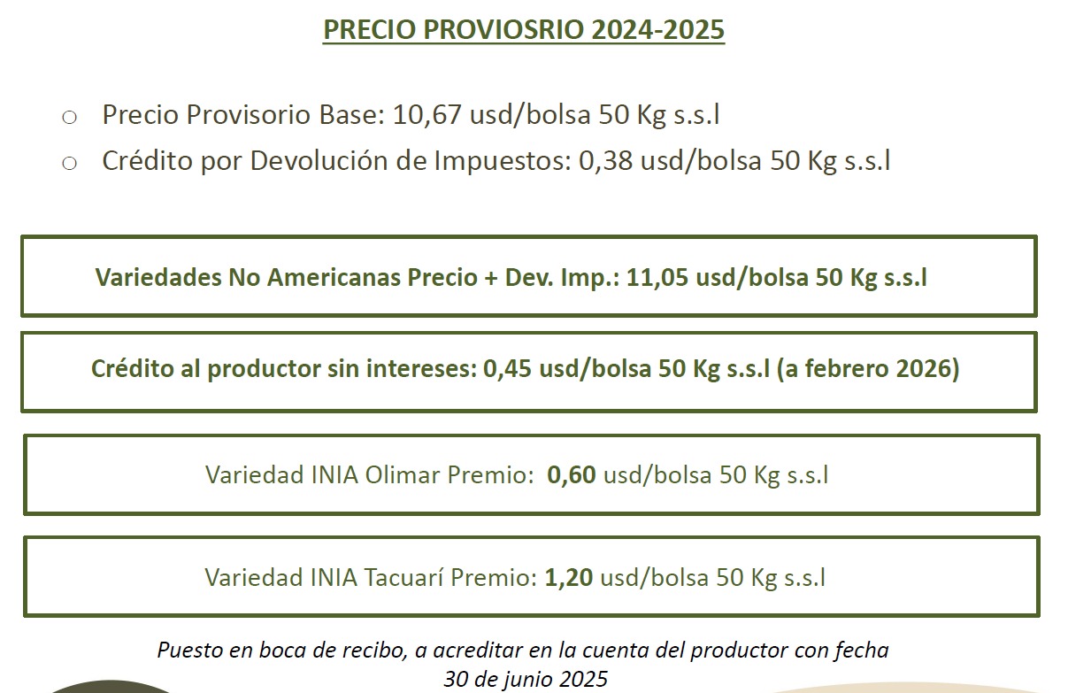 Precio de Arroz – 20/6/2025 Precio Provisorio Año Agrícola 2024/2025